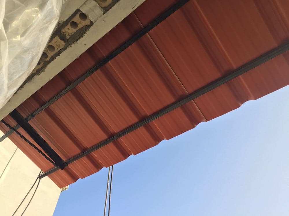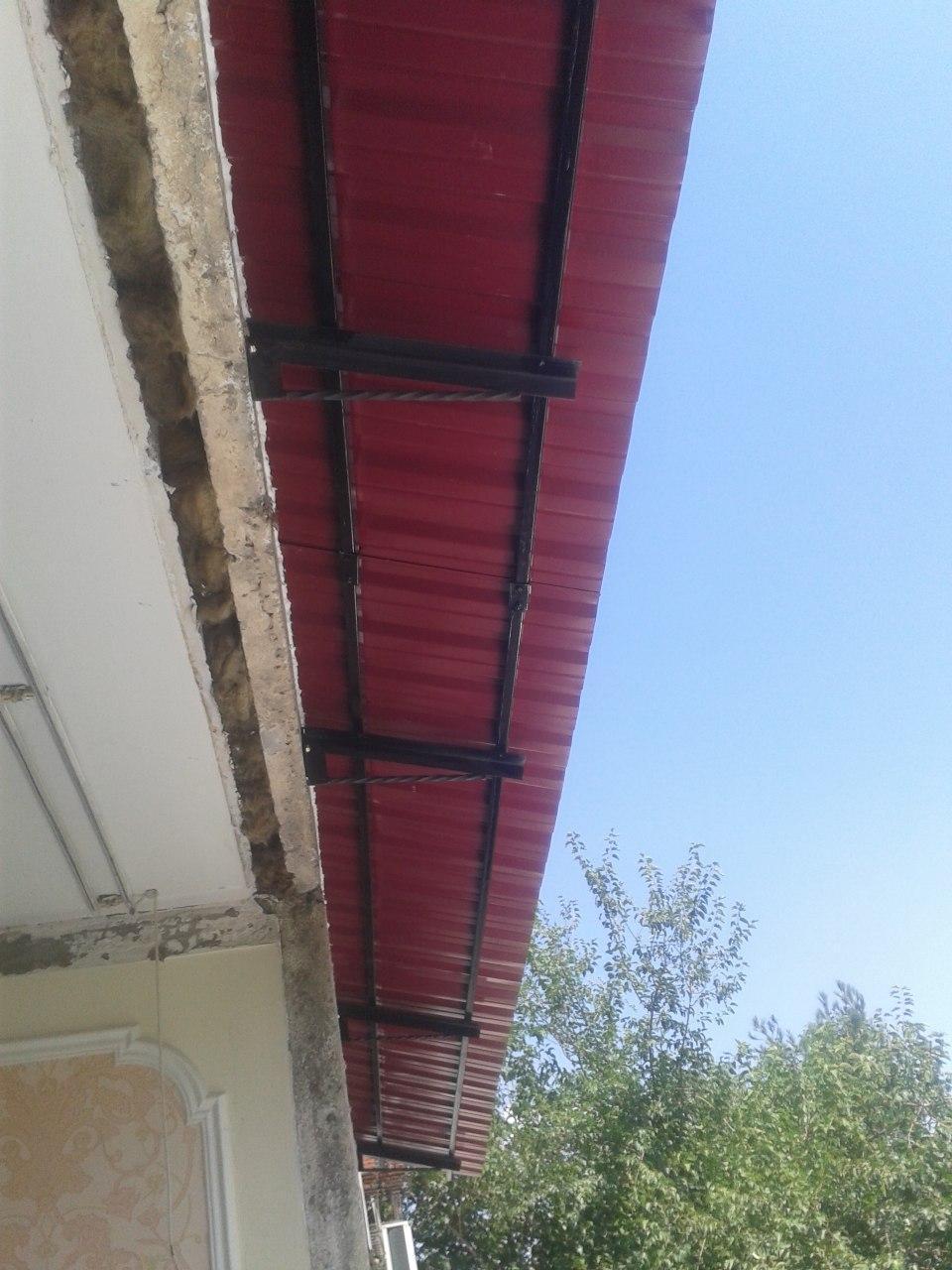 Продольный каркас мы также используем только металлический (профиль 3см х 2см). Деревянные брусья мы не используем, т.к. разница в цене небольшая (на козырёк 6 м разница 30000 сум). Тем более хорошие брусья (без сучков, без горбыля, без кривизны) найти трудно.